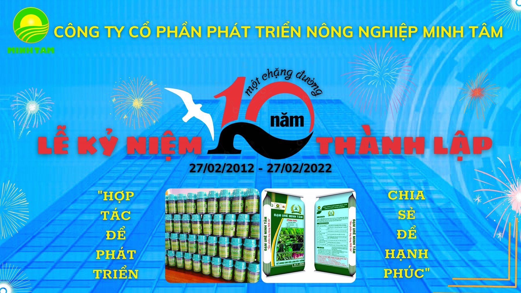10 năm – một chặng đường. 10 năm – một niềm tin. Công ty CP phát triển nông nghiệp Minh Tâm tin rằng, 10 năm, 20 năm, và nhiều năm sau nữa, phân bón và lúa giống Minh Tâm sẽ mang lại cho bà con nông dân sự phấn khởi được mùa, mang lại tín hiệu tốt cho sự phát triển bền vững cho nền nông nghiệp Việt Nam.